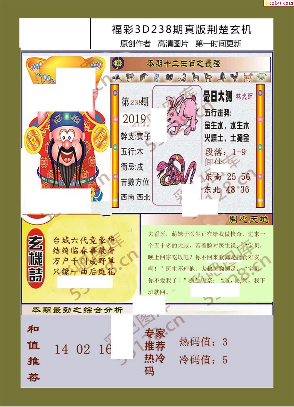 25福彩3d238期真版荆楚玄机彩报