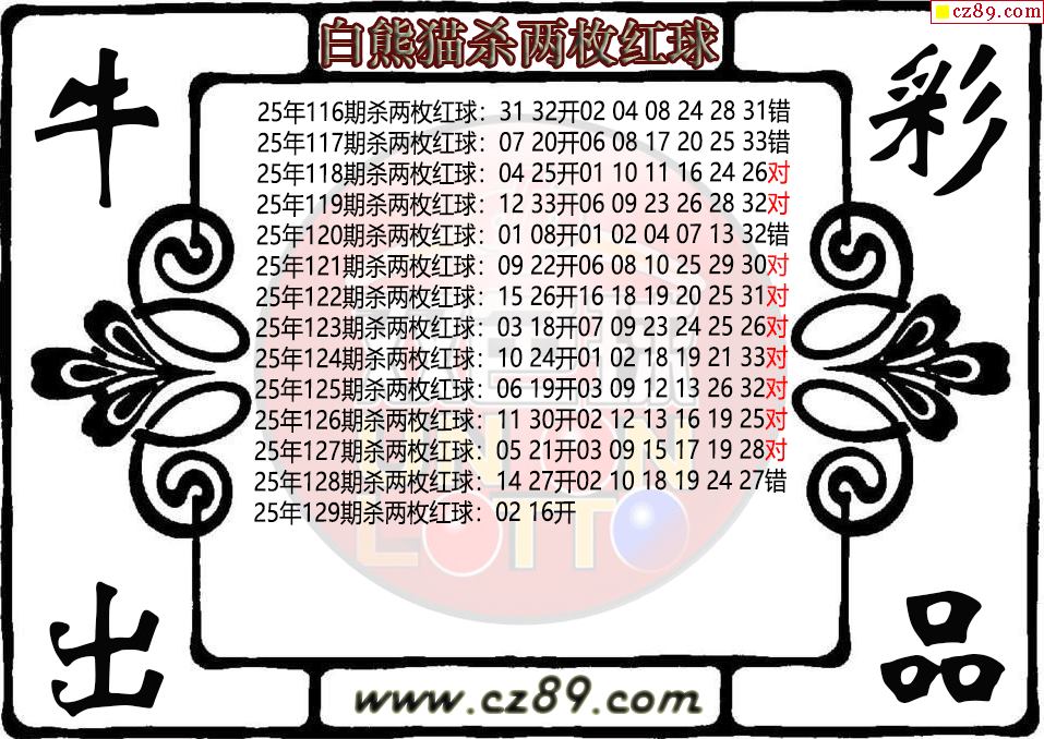 双色球129期白熊猫杀两枚红球图迷